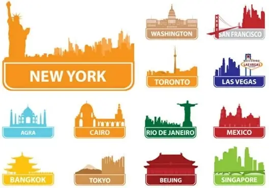 cities symbols stickers colored flat decor