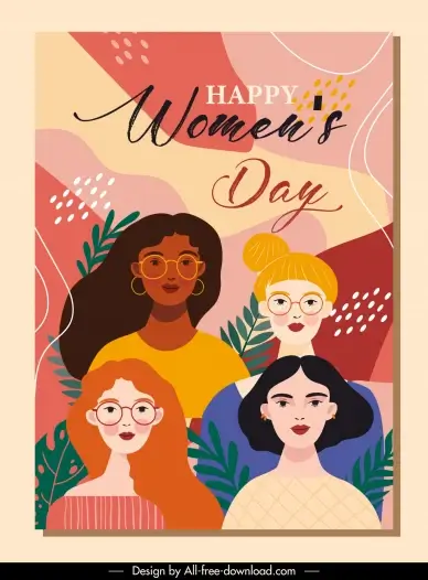 international womens day poster template flat lady faces leaf classic