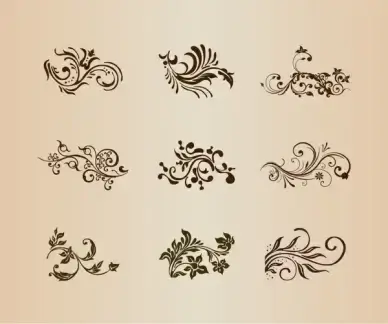 swirling flourishes floral decorative elements vector illustration set
