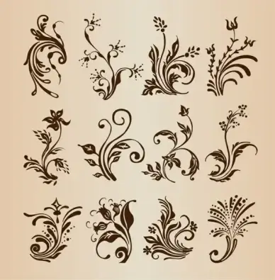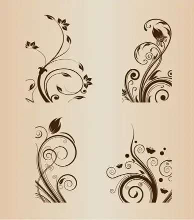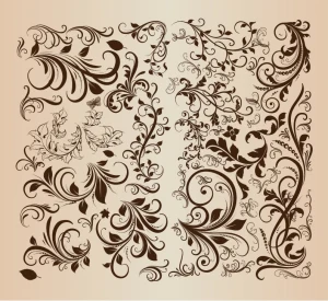 floral swirl vector set