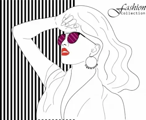 female fashion background beautiful lady icon handdrawn sketch