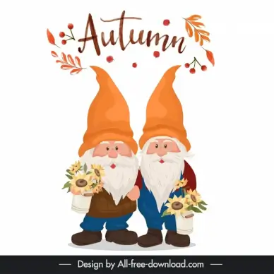 autumn characters design elements cute cartoon dwarfs flowers leaves