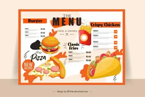 fast food menu template colorful classical decor