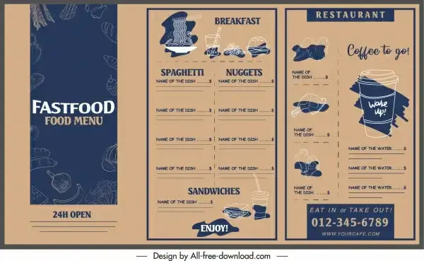 fast food menu template food vignette brown decoration