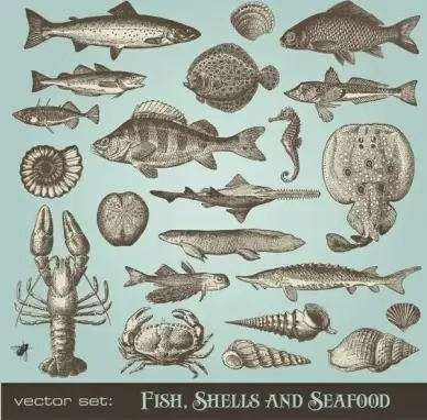 seafood design elements blue green flat sketch