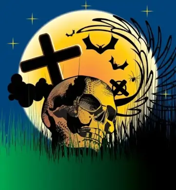 Halloween background with moon and cemetery