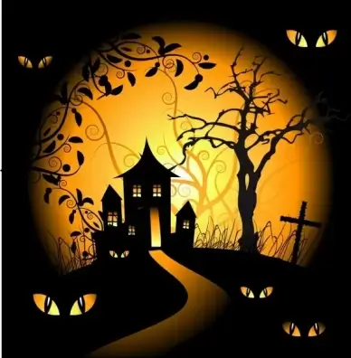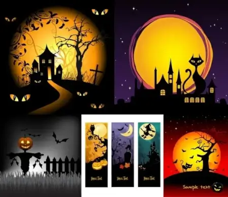 halloween banner template dark classic horror cat bats grave yard elements decor