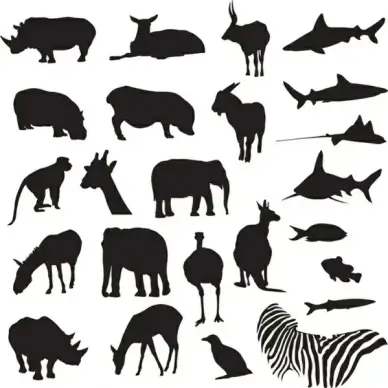 various wild animals vector illustration with silhouettes design