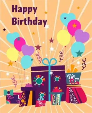 happy birthday backdrop template elegant dynamic balloon confetti ribbon