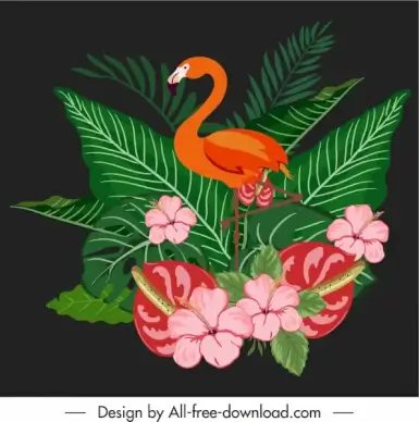 tropical wildlife pattern leopard hibiscus sketch dark design