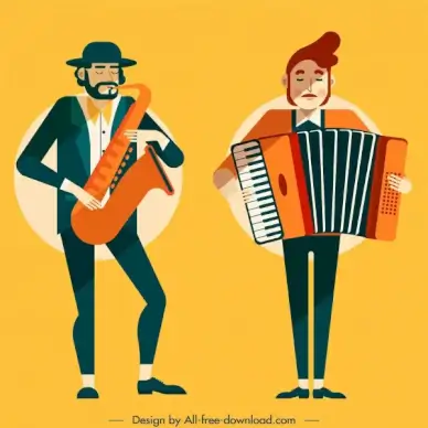 accordion player icon colored cartoon character sketch