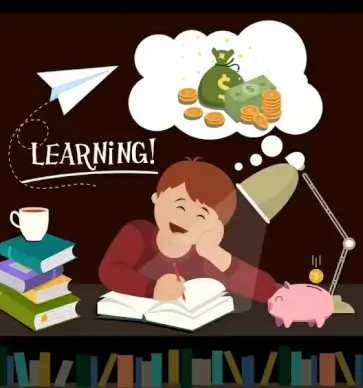 knowledge value banner learning boy money dream icons