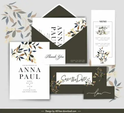 wedding card templates elegant leaves decor contrast design