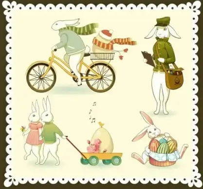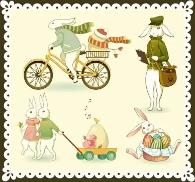 easter design elements rabbit characters stylized cartoon design