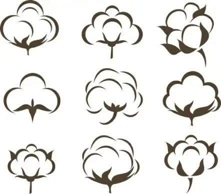 cotton flowers icons collection various flat sketch