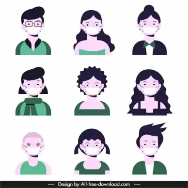 covid 19 avatars icons masking faces sketch