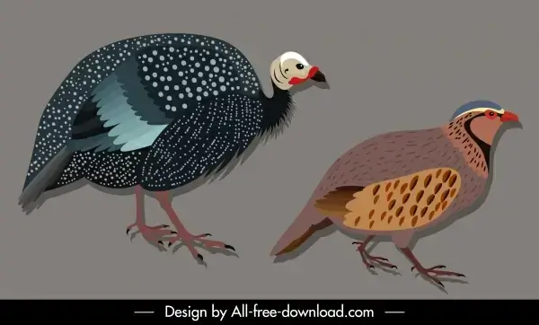 bird species icons francolin guinew fowl sketch