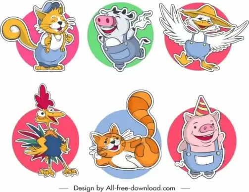 animal sticker templates rooster cat pig icons design