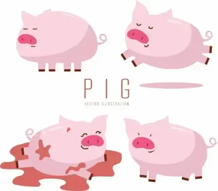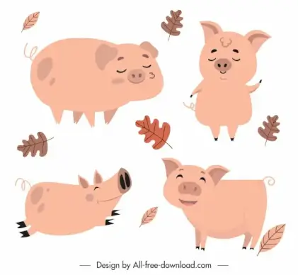 pig icons collection cute pink design