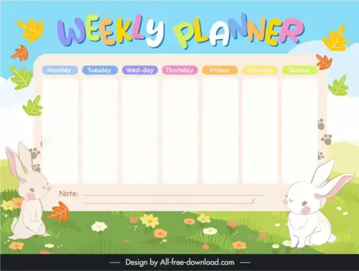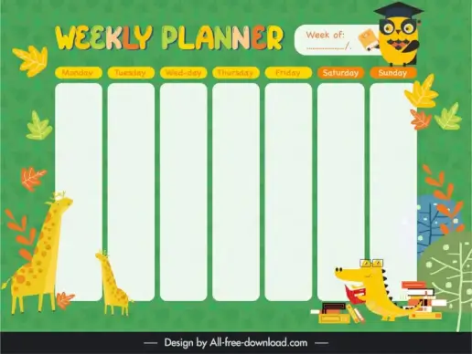 weekly planner template cute funny dynamic elephants circus performance sketch