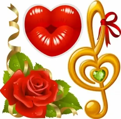 valentines design elements modern lips notes roses icons