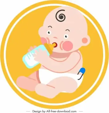 newborn baby icon bottlefeed gesture cute cartoon sketch