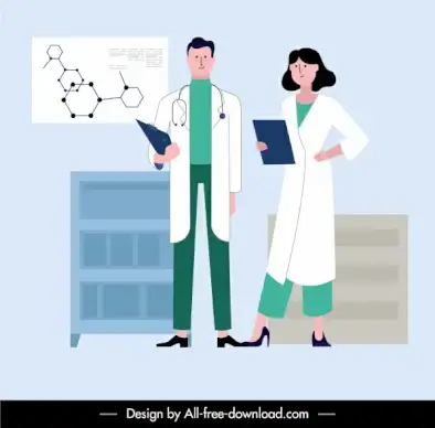 doctor career background cartoon sketch uniformed people