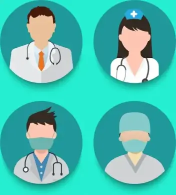 doctor icons colored cartoon design blouse uniform