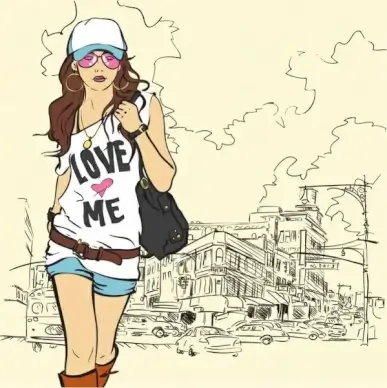 Free Vector Fashion Girl with Abstract Background
