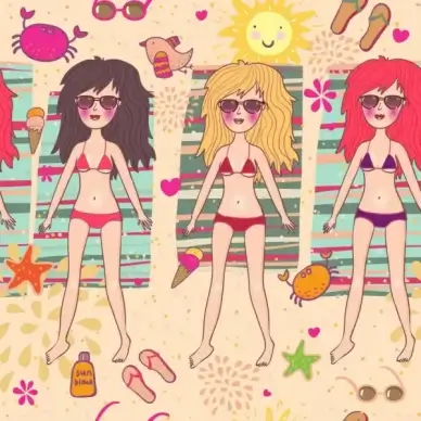 summer sexy girls vector graphic set