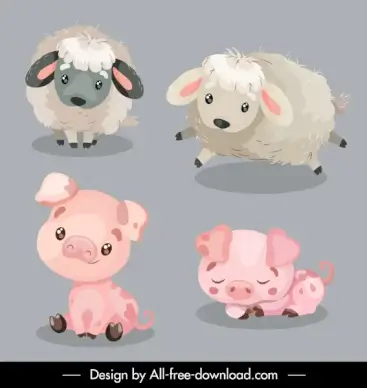 farm animals icons ducks sheep sketch handdrawn cartoon