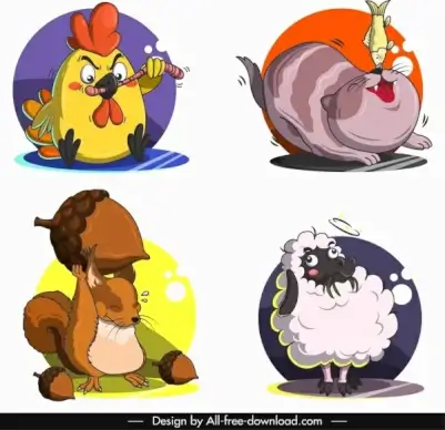 animals icons sheep rabbit squirrel sketch handdrawn design
