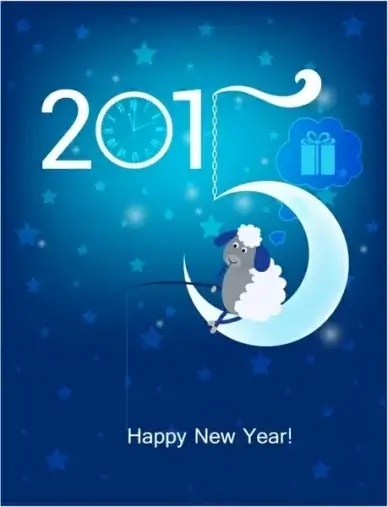 Happy New Year 2015 Original Christmas card Sheep fishing