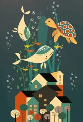ocean elements backdrop template elegant dynamic 3d podium handdrawn design