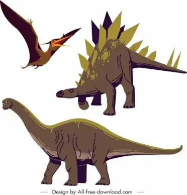 dinosaur icons stegosaurus pteranodon apatosaurus sketch