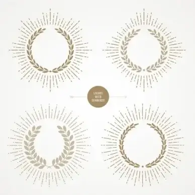 laurel with sunburst vector set