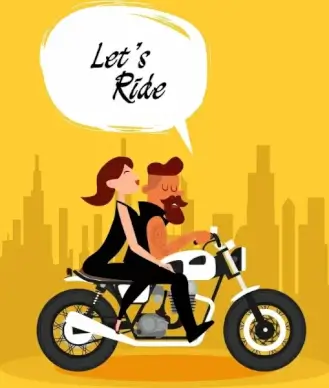 lifestyle background couple riding motorbike icon cartoon design