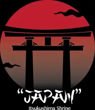 japanese design elements temple gate sakura flower sun sketch