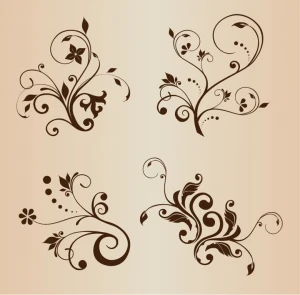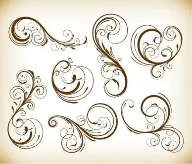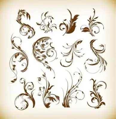 Vector Set of Swirling Flourishes Decorative Floral Elements