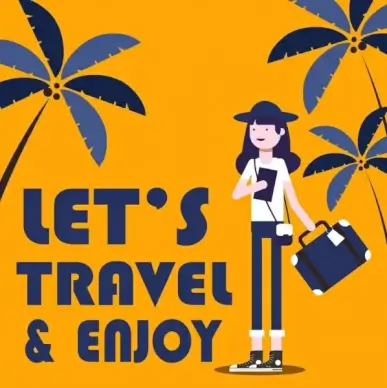 travel banner woman coconut icons classical design