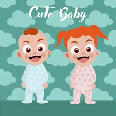 babies drawing cute boy girl icons