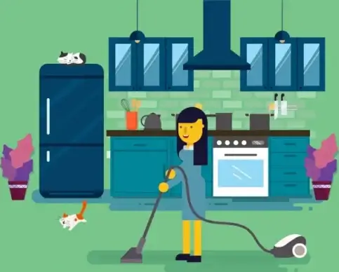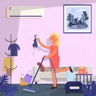 cleaning work drawing woman vacuum cleaner icons