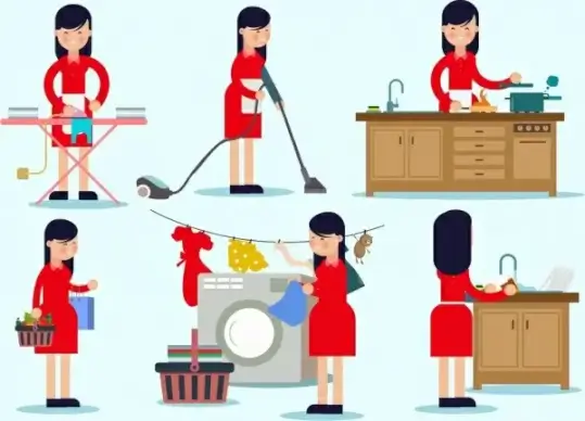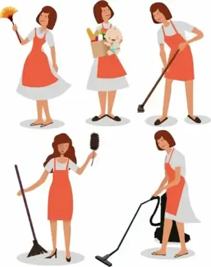 housewife work icons cartoon characters