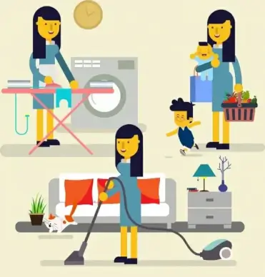 housewife work drawing woman son icons colored cartoon