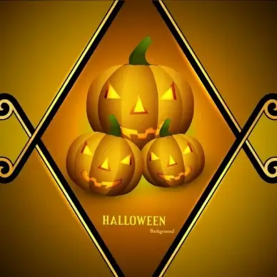 halloween scary yellow pumpkins card background vector