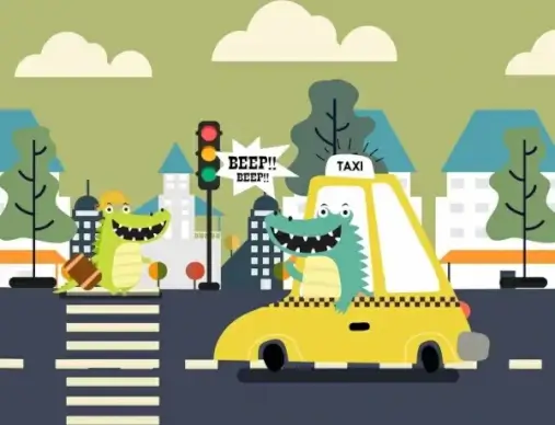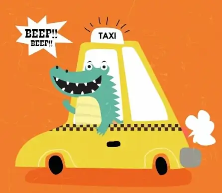taxi background car stylized crocodile icon funny cartoon