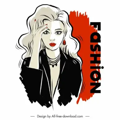 fashion poster template elegant lady sketch handdrawn cartoon