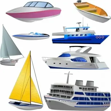 boats design collection various types isolation in colors