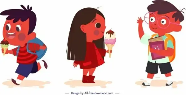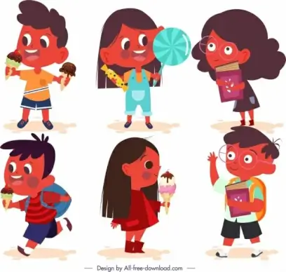 playful kids icons colored cartoon characters