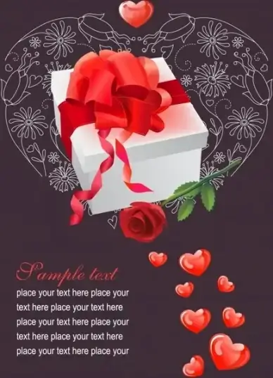 love banner present box heart rose icons decor